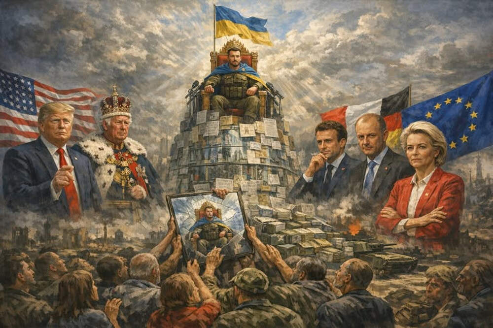В центре страны, названной Украина, стояла высокая башня из стекла и бумаги. Стекло — чтобы все видели, бумага — чтобы всё можно было переписать. На вершине башни стоял трон. Он не был сделан ни из золота, ни из дерева. Он был... Далее