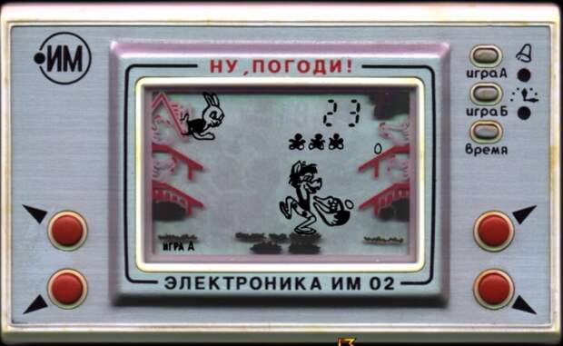 Главный игровой гаджет 1980-ых. Волк должен поймать в корзину как можно больше яиц, «поставляемых» курами с четырех сторон. За каждое пойманное яйцо засчитывалось очко, за каждое разбитое яйцо – очко отнималось. Набрав 200 очков, игрок получал призовую игру. Во время игры периодически в верхнем углу экрана являлся заяц, и тогда можно было заработать бонусные очки. Интересно, что среди советских психологов возникали вопросы к «Ну, погоди!»: было мнению, что дети в процессе игры начинают себя ассоциировать с негативным персонажем – волком, и что это может сказаться на правильности их социальных установок.